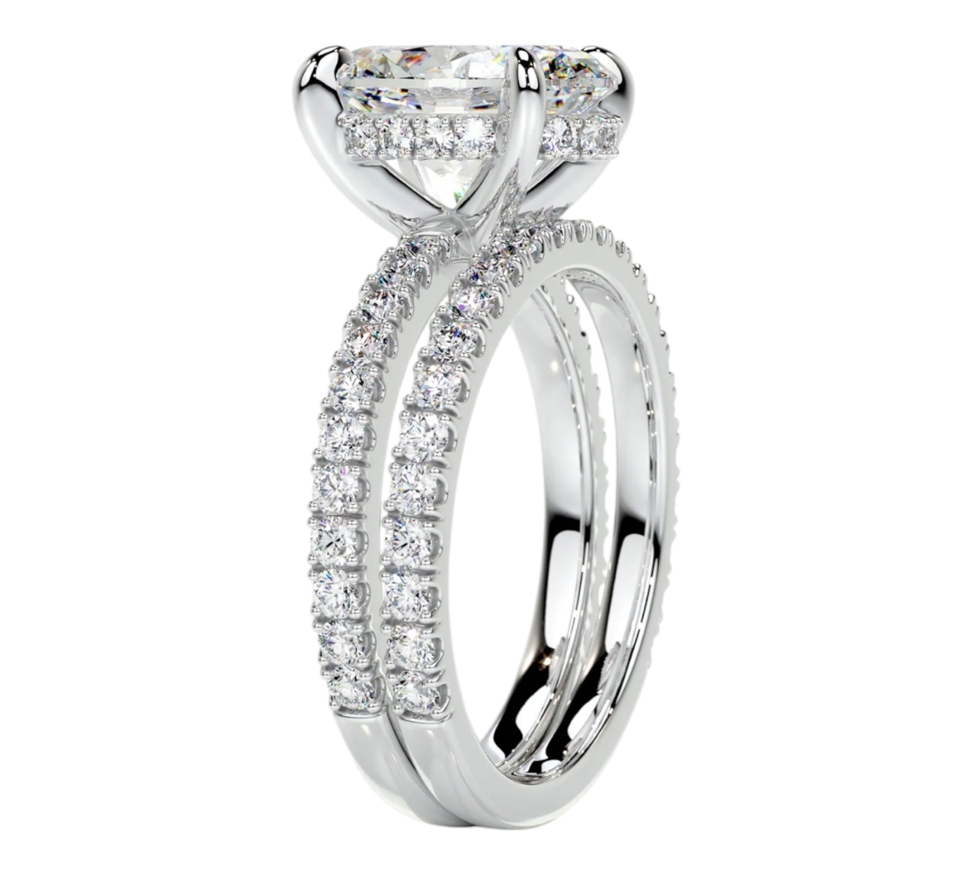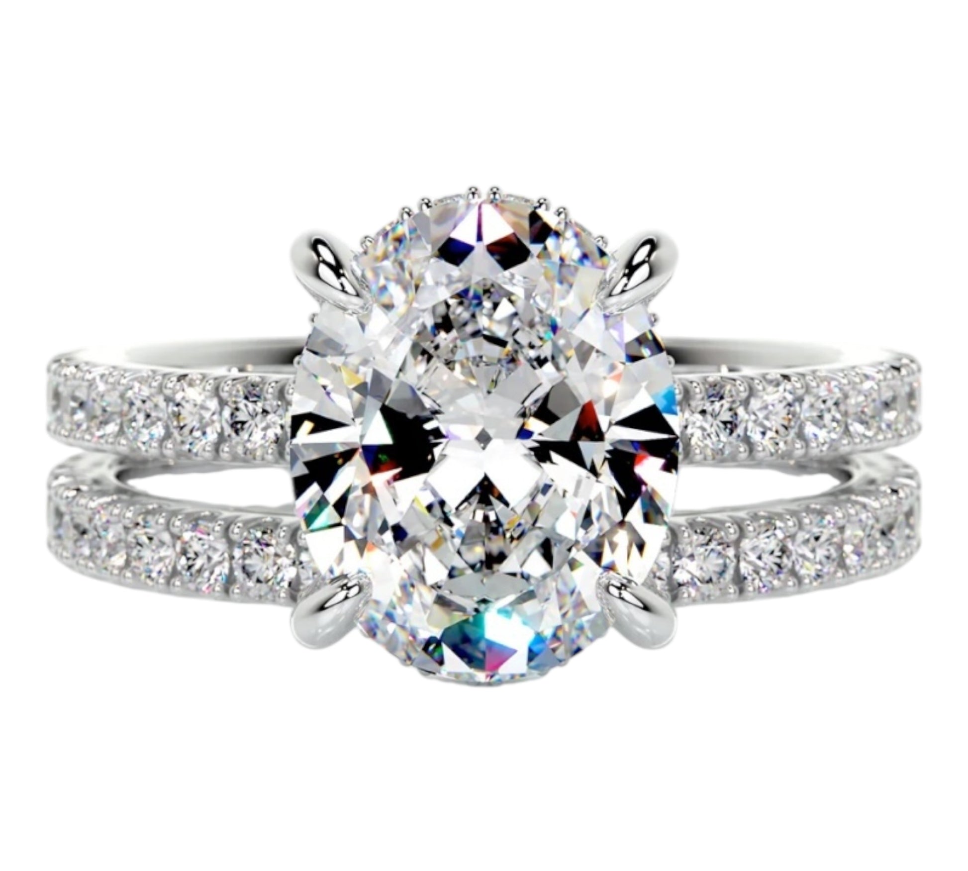 2.5 carat. Oval. Hidden Halo. 14k white gold