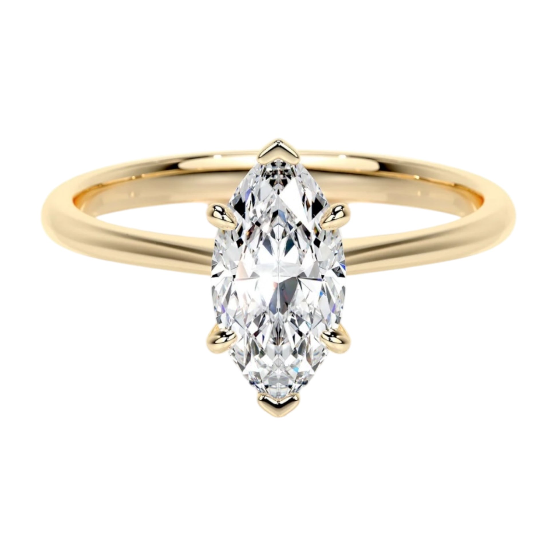 2.1 carat. Marquise. Hidden halo. 14k yellow gold