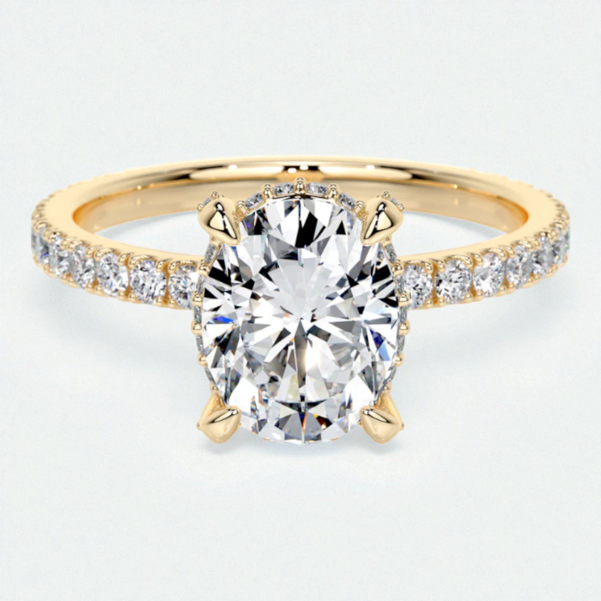 2.5 carat. Oval. Hidden Halo. 14k yellow gold
